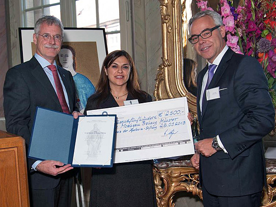 Förderpreisträgerin PD Dr. Mozhgan Bizhang mit Dr. Bartling und Ulrich Sommer, Mitglied im Vorstand der Apo-Bank